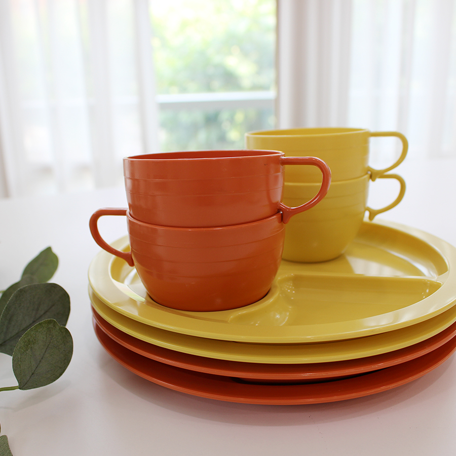 GITS WARE Mid century Plastic picnic Plates and Cups Set of 4 1950~1960s